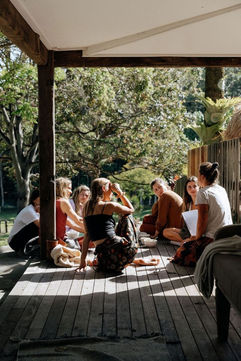 The morning begins slowly — warm drinks, bare feet on cool ground, space to breathe before the world asks anything of you. Your nervous system settles before your mind ever tries to lead. You gather with other women in a calm, sunlit space. Scripture is shared and you notice something different: when your body feels safe, God’s Word lands deeper.